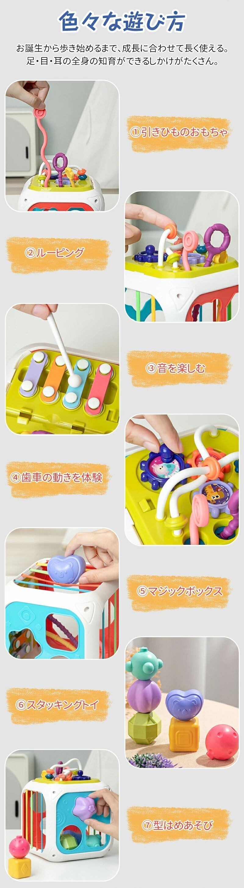 赤ちゃん おもちゃ マジックボックス 型はめあそび 歯車 スタッキングトイ 音が鳴る 楽器 ルーピング 握る 投げる プルストリング 引きひものおもちゃ はじめて おうち時間 孫 男の子 女の子 誕生日 新年 プレゼント 出産祝い ベビー向けおもちゃ 0歳 1歳