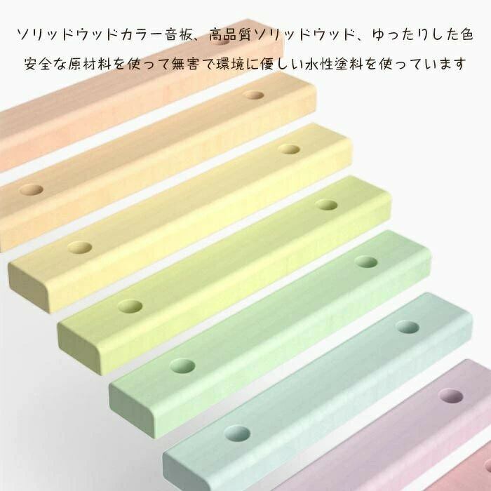 【安全性と素材へのこだわり】 この木琴は高品質な天然木を使用し、環境に優しい水性塗料で仕上げられています。小さなお子様にも安心して使えるよう、手触りが滑らかで、鋭利な部分は一切ありません。塗料は無害で、口に入れても安全です。